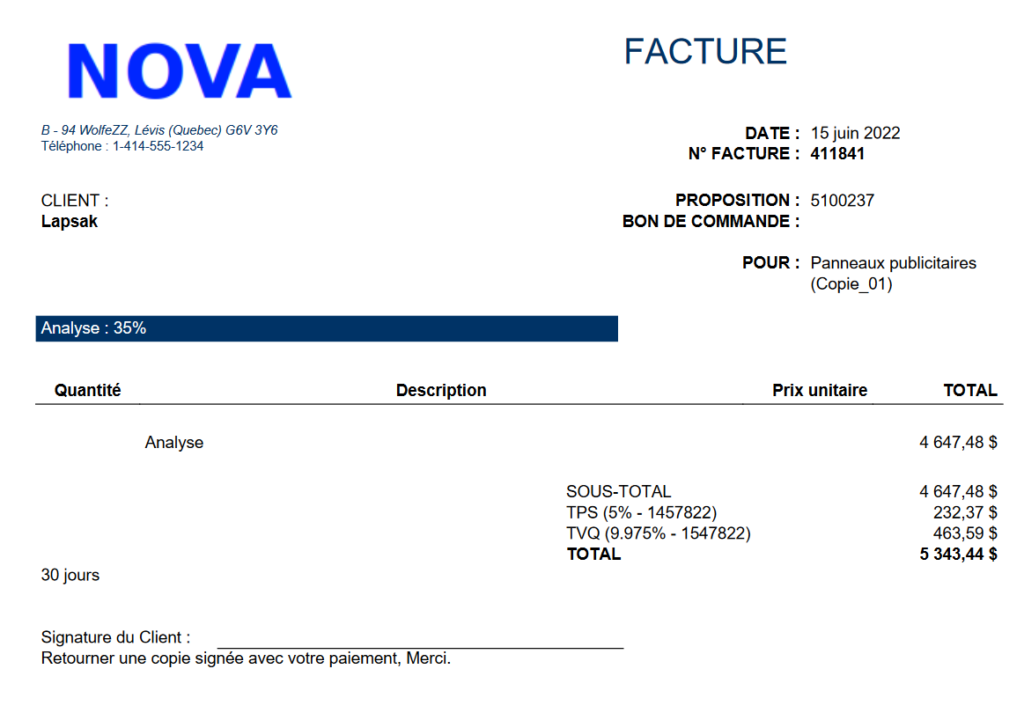 Le tour est joué et votre gabarit de facture est totalement personnalisée!