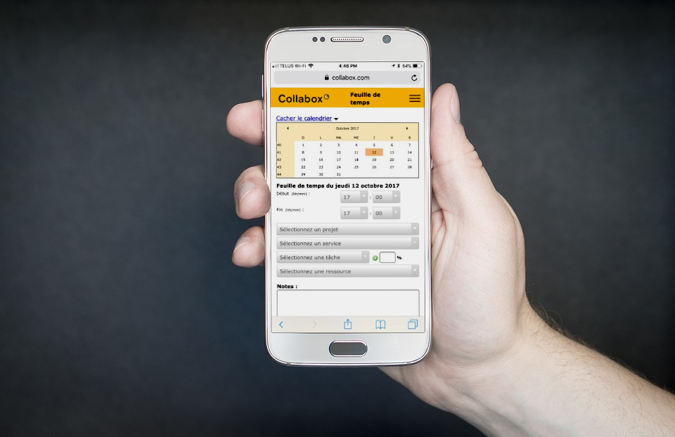 Alors, que vous soyez au bureau, sur la route ou au Mexique sur la plage, Collabox vous est accessible en tout temps. Sa conception est pensée pour l’ensemble des employés de l’organisation. Ainsi, l’employé sur la route peut en tout temps remplir sa feuille de temps, terminer des tâches ou confirmer des rendez-vous à partir de son cellulaire! De son côté, le responsable de projet peut continuer sa gestion de son ordinateur au bureau.
