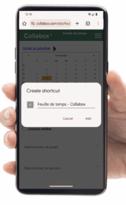 - 3- Sélectionnez la page Collabox préférée ou la plus utile, par exemple, votre feuille de temps pour créer le raccourci.