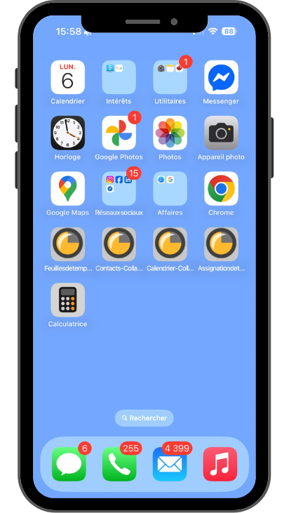 Pour accélérer le processus de connexion à vos outils (modules et fonctions) de votre Collabox, vous pouvez ajouter plusieurs icônes différentes directement sur la page d’accueil de votre appareil mobile iOS ou Android.
