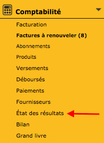 Une fois la vérification complétée, vous pouvez maintenant afficher votre état des résultats. Pour ce faire et toujours dans le module « Comptabilité », cliquez sur « États des résultats ».