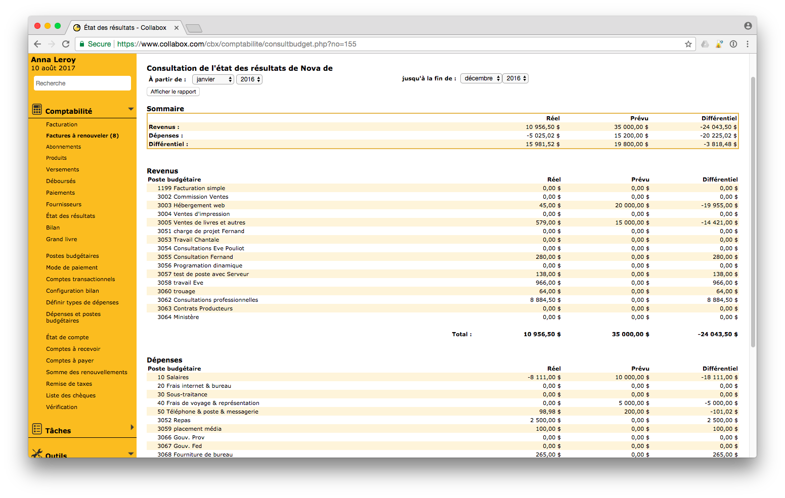 Votre année fiscale tire à sa fin et le temps de faire vos impôts approche ? Collabox vous permet d’économiser temps et argent. En seulement quelques clics, vous pouvez afficher l’état de vos revenus et de vos dépenses pour une année. C’est ce qu’on appelle l’état des résultats. Mais avant d’afficher ce rapport, vous devez effectuer la vérification de vos factures et de vos déboursés.