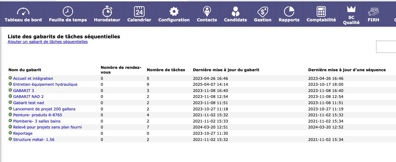Cette fonction vous permet de créer des gabarits qui contient des étapes, qui deviendront des tâches une fois associées à un projet spécifique.