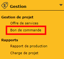 Ouvrez ensuite la page Bon de commande située dans le menu de gauche.