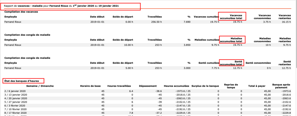 Le rapport – Banque d’heures permet de voir toutes les heures que vos employés ont mis dans leur banque d’heures par la feuille de temps.