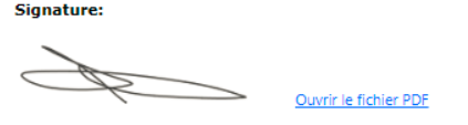 Cliquez sur le bouton et signez le document. En imprimant le PDF à nouveau, comme à l’étape précédente, la signature apparaît.