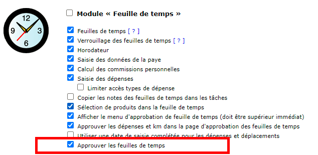 Cette case vous assure que l’employé a bien terminé de remplir ses feuilles de temps pour la semaine.