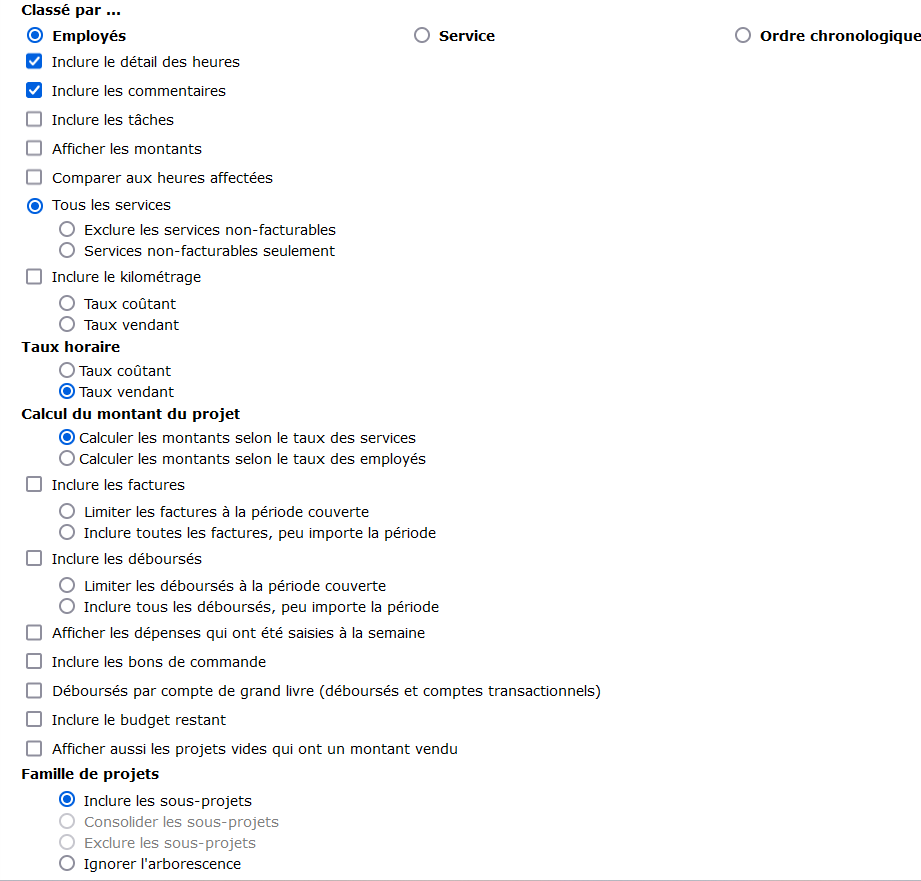 Le rapport par client propose une panoplie d’options d’affichage de données. Il vous incombe de cocher chaque case qui vous intéresse pour personnaliser votre rapport.