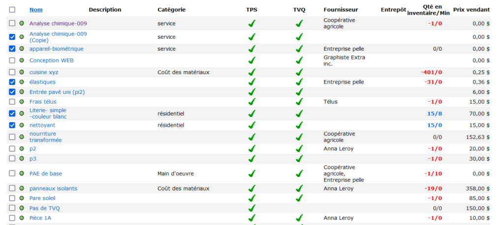 Dès lors, vous arrivez sur la page de la Liste des Produits. Sélectionnez tous les produits désirés.