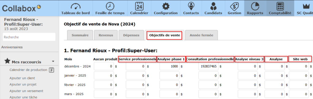 Saviez-vous qu’il est possible d’ajouter des objectifs de vente à vos produits d’opportunité? Il s’agit d’un outil très utile à la fois pour votre budget prévisionnel et pour le suivi quotidien.