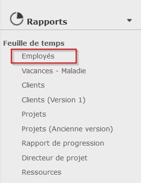 Tout comme pour la feuille de temps normale, vous pouvez créer un rapport d’employé pour afficher vos heures . Sélectionnez d’abord « Rapports » dans le menu principal.