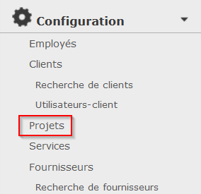 Ouvrez le menu Configuration, puis, dans le menu déployé de gauche, sélectionnez « Projets ».