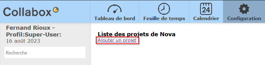 Vous êtes dans la LISTE des projets. Dans le haut gauche de la page, cliquez sur le lien « Ajouter un projet ».