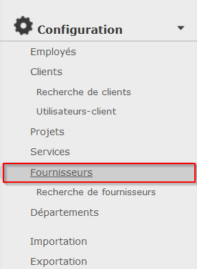 Puis, dans le menu déployé de gauche, sélectionnez « Fournisseurs ».