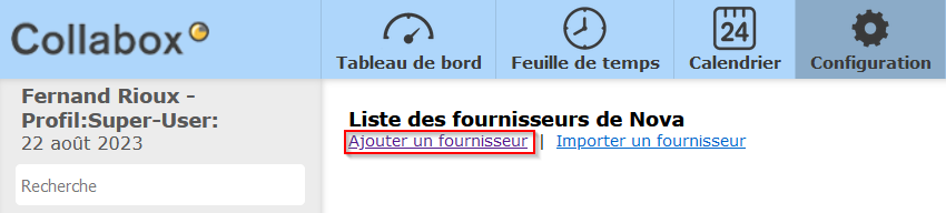 Dans le haut gauche de la page, cliquez sur le lien « Ajouter un fournisseur ».