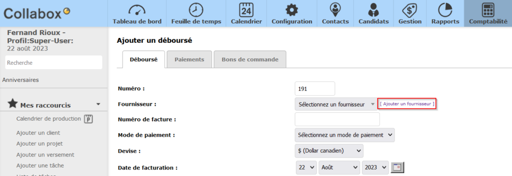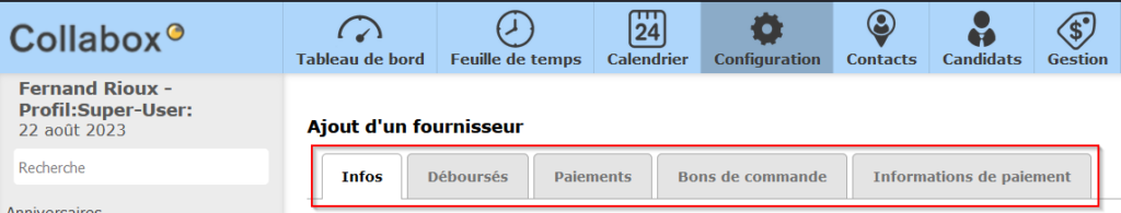 Voici la marche à suivre pour créer un fournisseur. Elle vous sera utile dans les premiers jours de votre utilisation du Collabox.