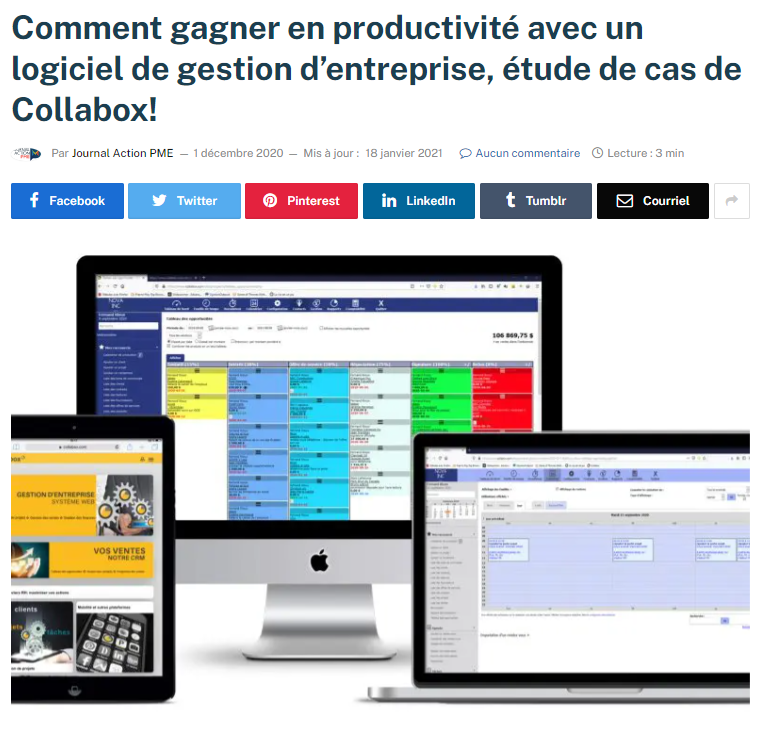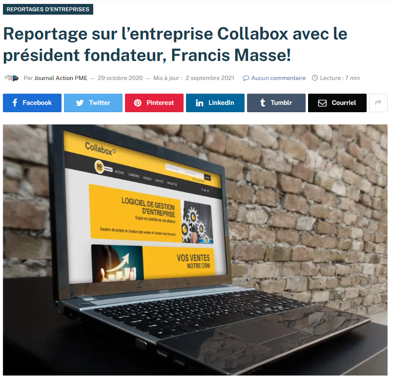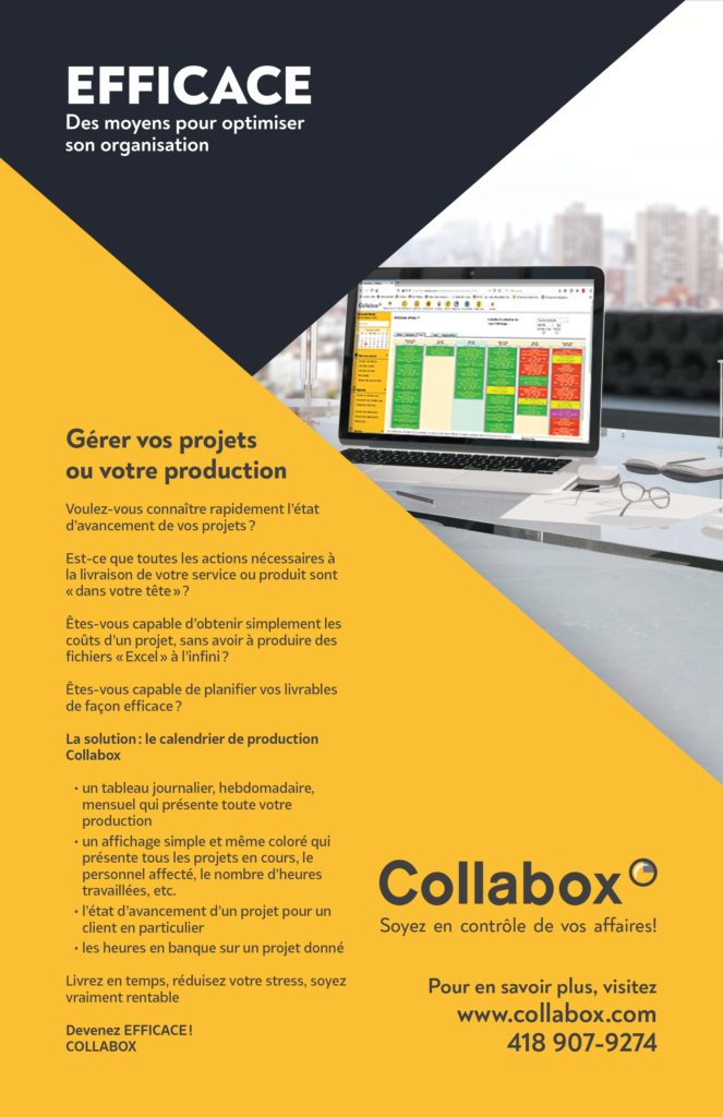 Collabox est présent dans de nombreux médias au Québec. Magazine Prestige et Quoi faire à Québec publications de L’Antidote Médias, Journal Action PME.