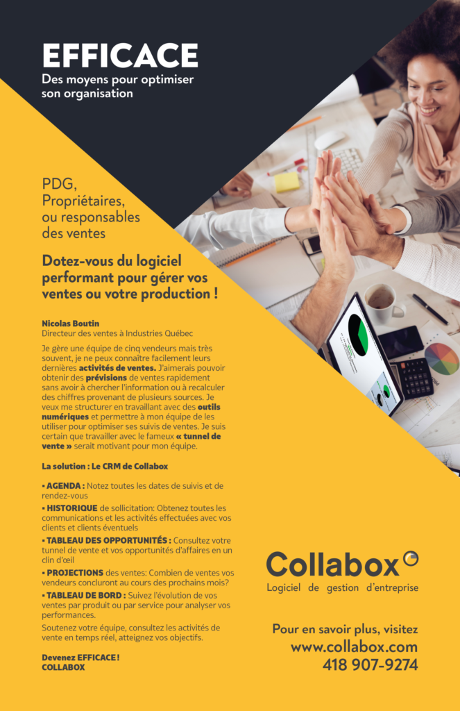 La première entrevue s’est déroulée avec monsieur Francis Masse, président de Collabox. Il parle de l’histoire de Collabox, de ses clients, de ses valeurs.