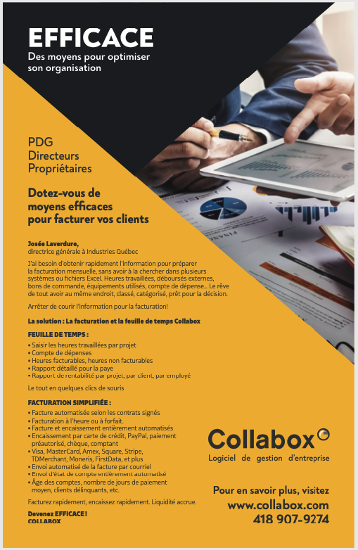 Finalement, voyez quelques exemples de la série Efficace. Comment Collabox vous permet d’optimiser votre efficacité entrepreneuriale!