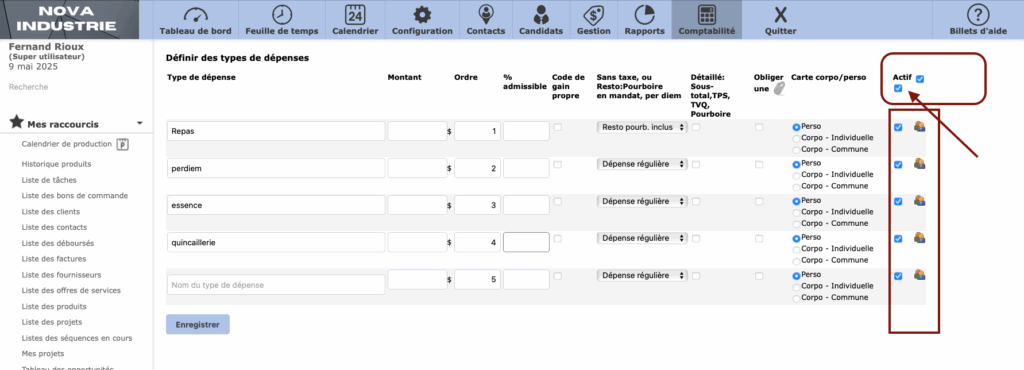 Dans le tableau des types de dépenses, il y a maintenant une case située en haut de la liste qui permet de cocher ou décocher tous les utilisateurs d’un coup.