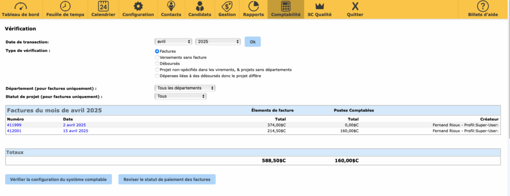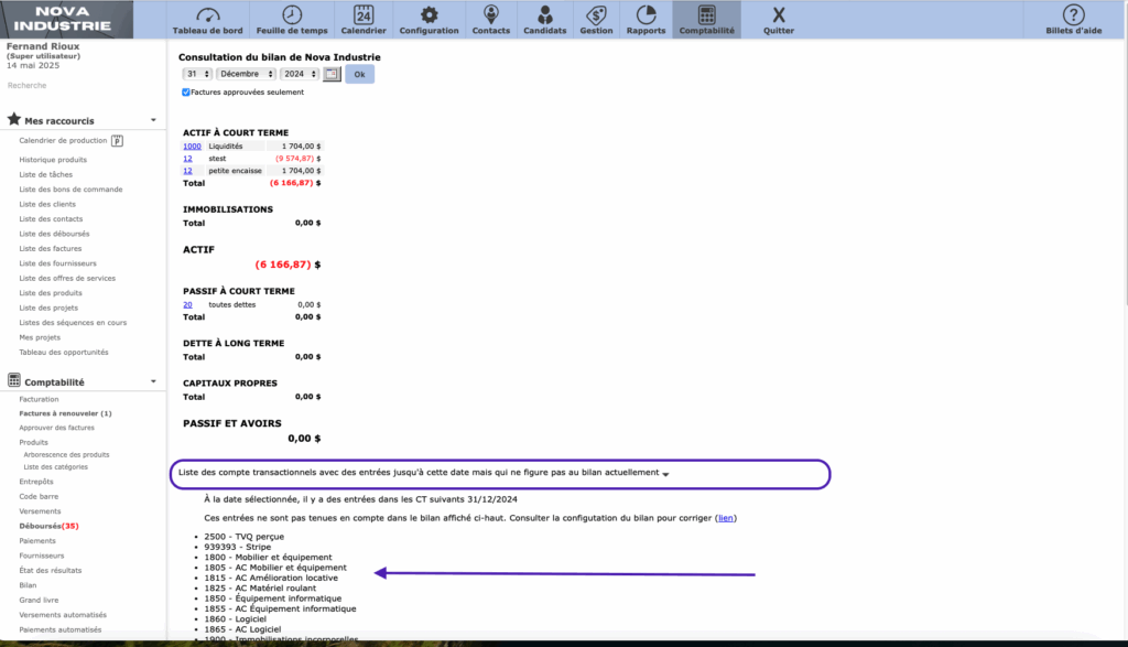 L’assistant peut vous alerter si vous avez des factures qui ne balancent pas et donc qui affecteront vos états des résultats, votre bilan et toutes les autres éléments comptables.
