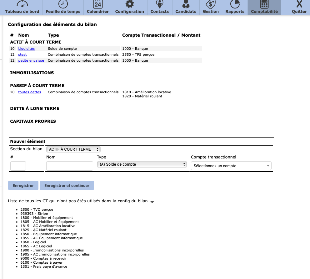 Un lien mène vers votre outil de Configuration du Bilan qui vous permettra de faire les modifications nécessaires.