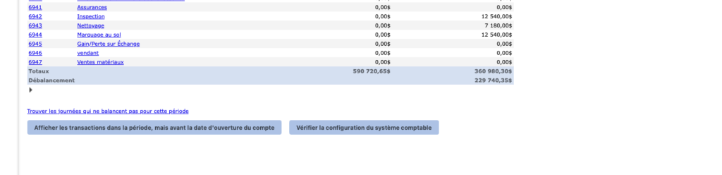 Par exemple, configurations erronées du bilan, déséquilibres dans les factures, etc.