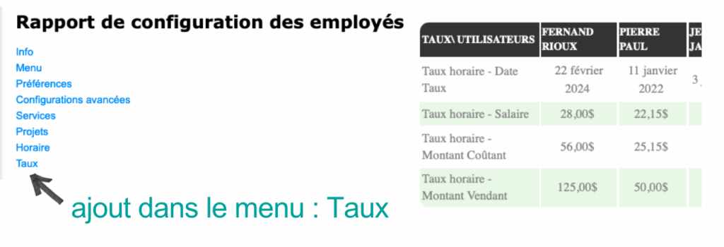 Rapports de configurations employés