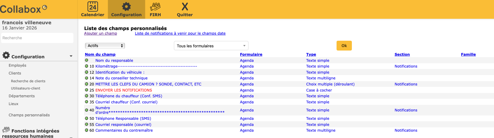 Vous avez aussi le choix d’ajouter différents champs spécifiques à vos besoins dans un rendez-vous ou dans d’autres champs du Collabox.