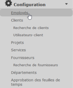To specify a default department, first go to the “Configuration” menu, then select “Employee” from the list at .