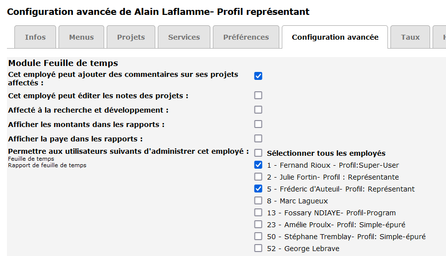 Click on an employee’s name to open his or her file. You must then go to the “Advanced configuration” tab.
