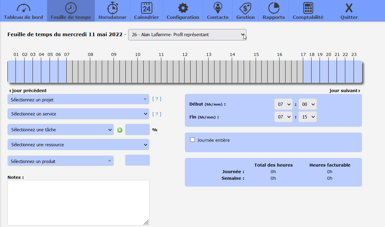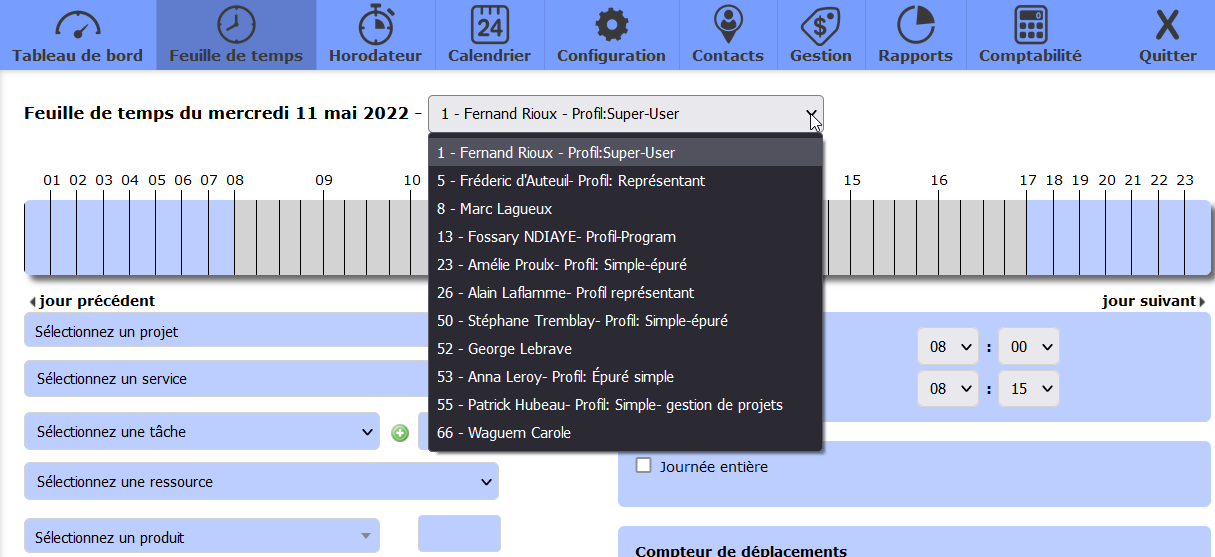 And There you go! It’s quick and easy. Now you can access your employees’ timesheets without their knowledge for follow-up purposes. You can also change incorrect information, add forgotten hours or reassign hours to another project or department.