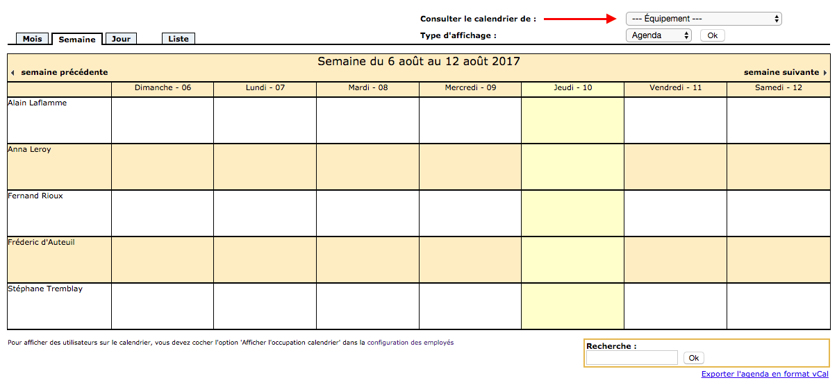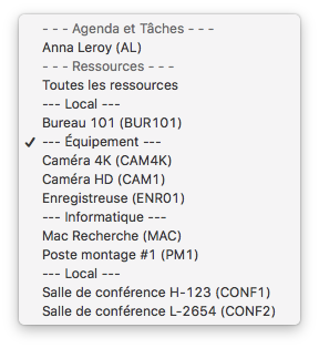 2- Click on the drop-down menu “Consult the calendar of ” and select the desired resource. If you want to know the schedule of all resources instead, click on “All resources”. Don’t forget to click on “ok” to display the agenda.