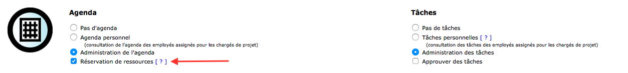 6- Finally, check the option “Reservation of resources” in the agenda section.