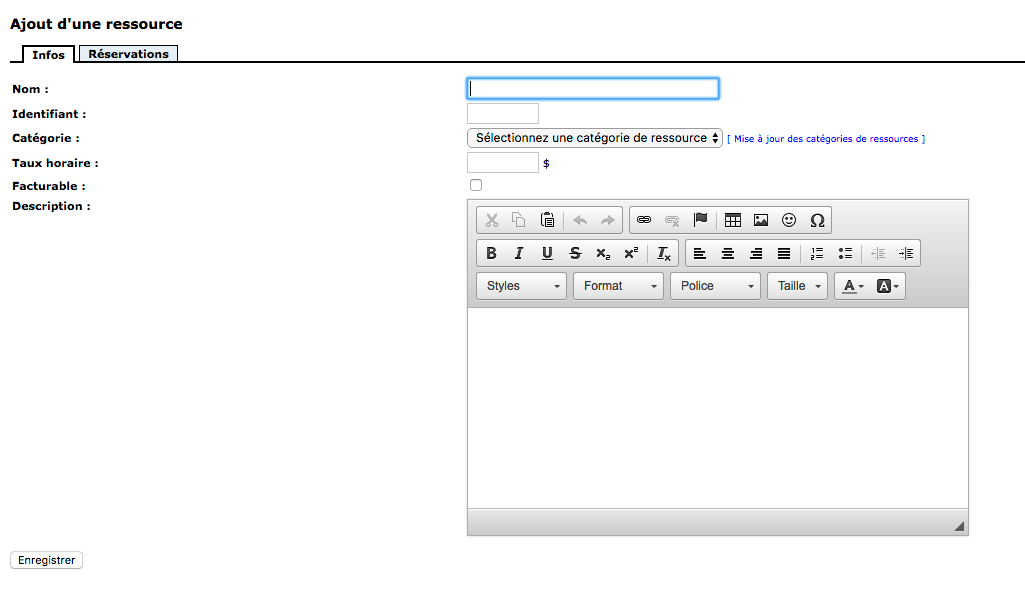 3- If you want to add a resource, click on “Add a resource”. Fill in the information and save the form.