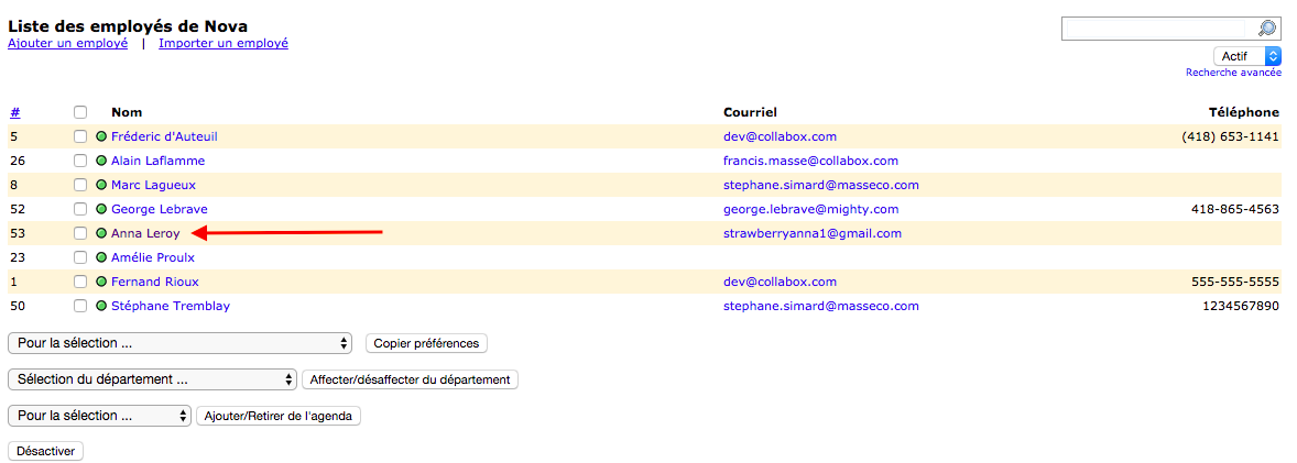 Choose the employee whose schedule you want to modify / view.