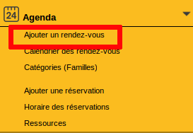 1. In the left menu, under the tab Agenda , click on Add an appointment .