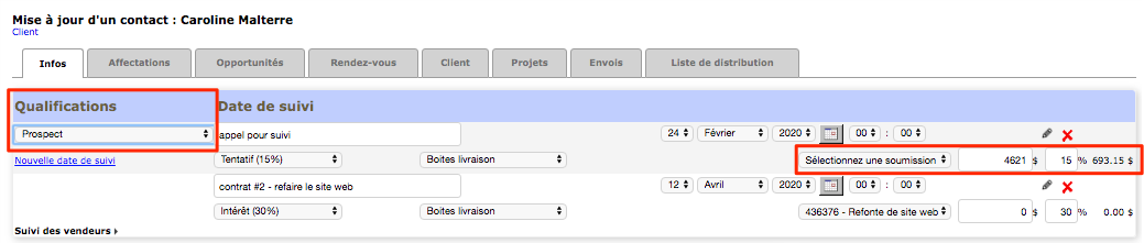 Knowing how to create opportunity statuses is good, but you also have to use them! After having completed the creation of the statuses, you must go to your customer files to assign an opportunity status to each person.