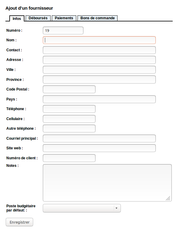 Page Adding a supplier