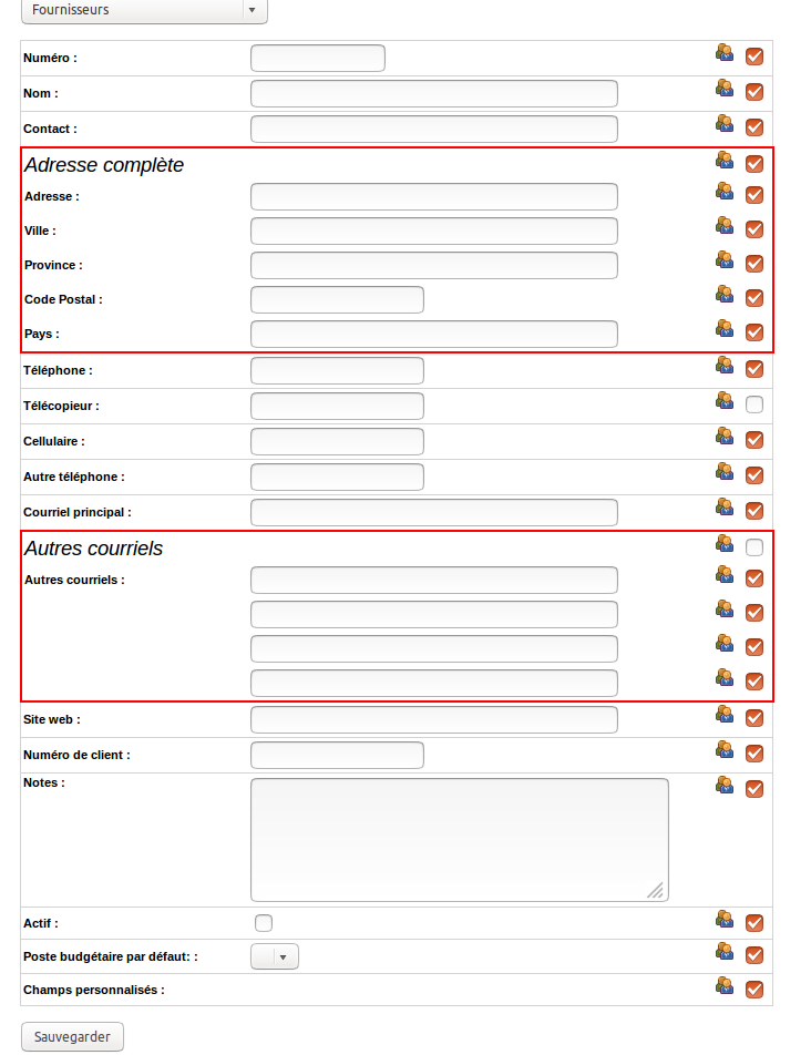 Check the box to make the corresponding section appear in your form or uncheck it to make it disappear.