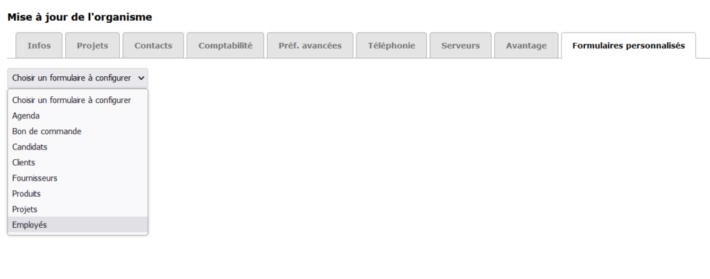 Then choose a form to customize with the drop-down menu. Modify one of the many forms available to you. The most recent are the Candidate and Employee forms.