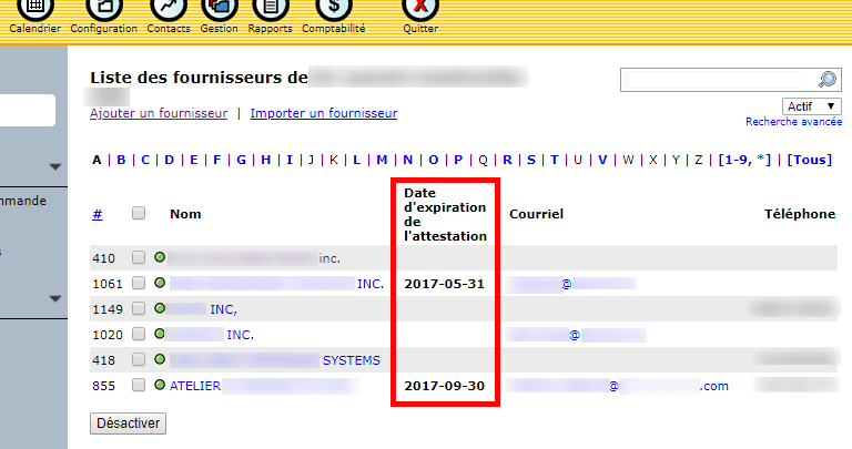 Then, when you will make a purchase order, you only have to indicate the supplier in the form, and the number and the date of certification will be automatically attached to it. The expiration date will therefore also be found in a column of the list of purchase orders.