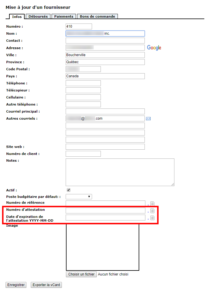 You must first enter the certificate number and the due date in the supplier form (the supplier being your subcontractor). If the provider has already been created, you can simply update it by adding this information. Otherwise, complete a new form.