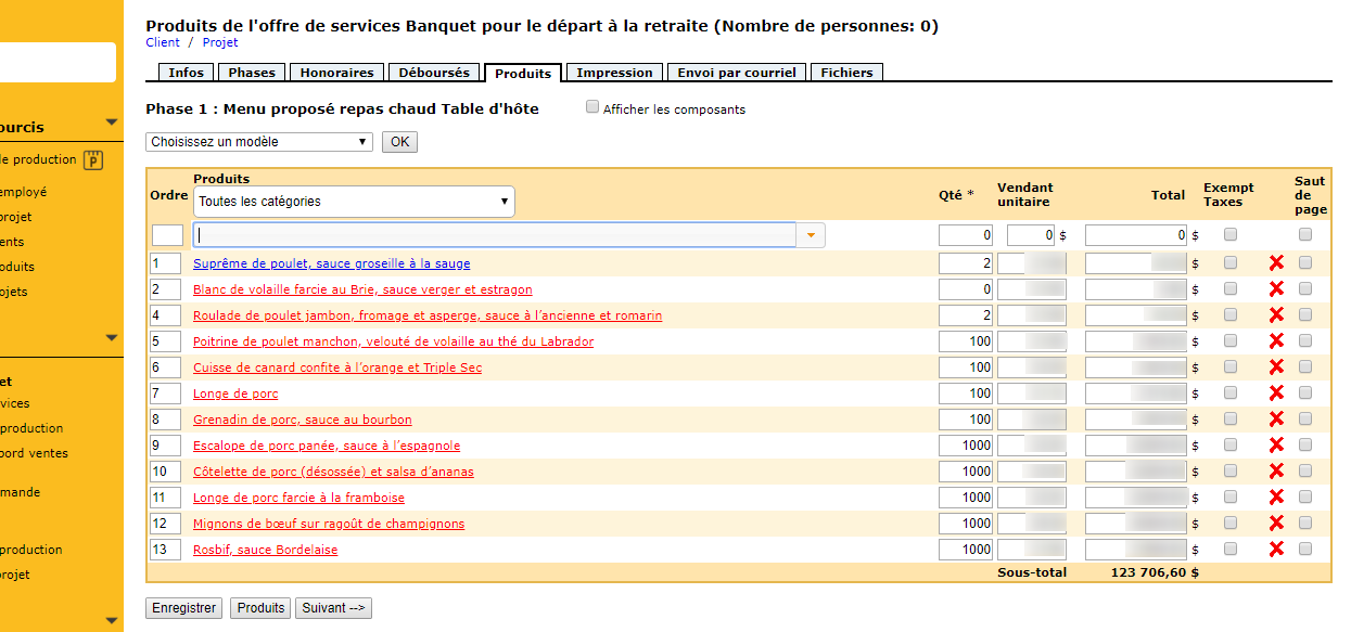 A catering service, for example, offers its client different options of accompaniment for the same menu. However, he does not necessarily want to include the client’s choices in the service offering so as not to overwhelm it, but he must all the same record them somewhere. Everything is then played under the tab Products of the service offer.