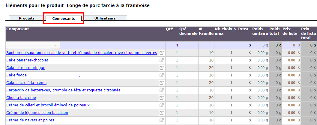 Click on the name of the product you want to modify in the list, then go to the tab Components.