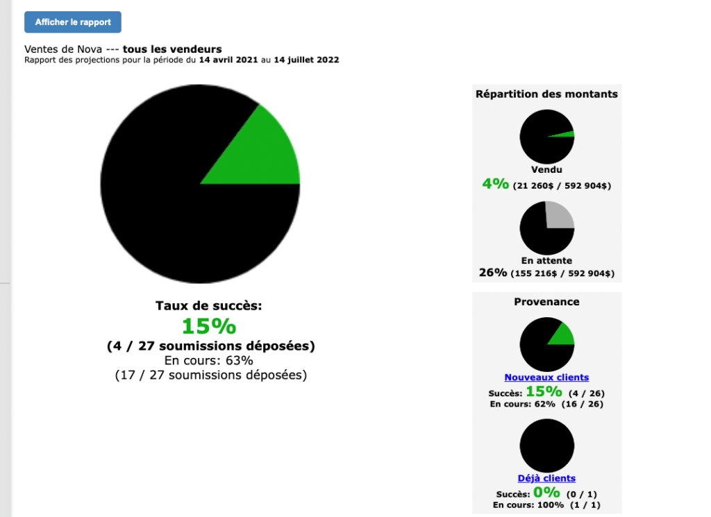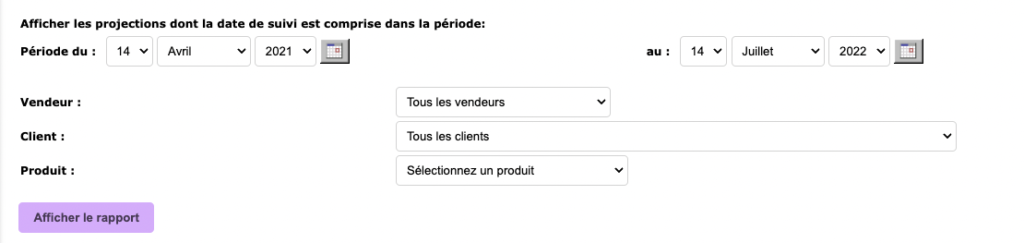 The sales projections report is available in the Collabox CRM module. It is a basic CRM tool that is essential to the management of your company, just like customer follow-ups and appointment management.