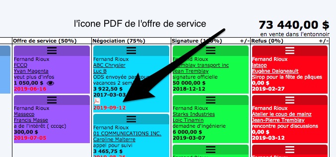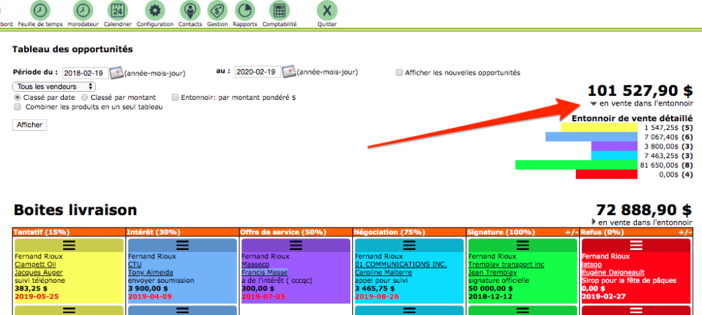 The opportunities table allows you to consult your “sales funnel” by product or service or for the whole.