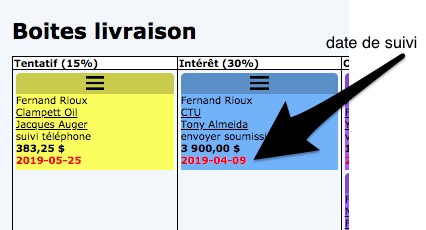 Access the contact form directly by clicking on the link in the box. Change the follow-up date of your contact by clicking on the link of your contact’s name. It will take you to your contact file where you can modify the information necessary for your follow-up.