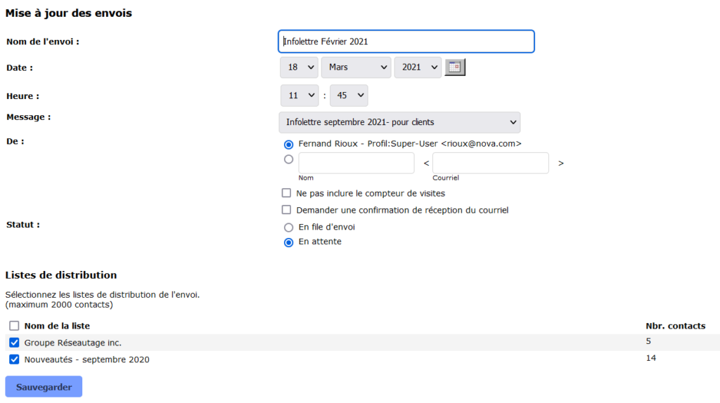 The Followmail works in close collaboration with the Collabox CRM module. Each contact in your module has the option, or not, to be part of a distribution list. It is up to you to select the option as needed directly in the contact’s record. To do this, go to the Contact tab and directly to the individual’s file. At the bottom of the page, check the “subscribe to distribution lists” box