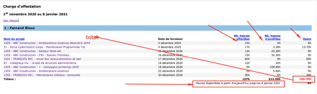 The assignment load has a component directly related to the project. It also has an employee component. This way you can see who is working the most on a project, and who has the largest workload in terms of quantity of projects. If necessary, you can rearrange the assignments to optimize performance.
